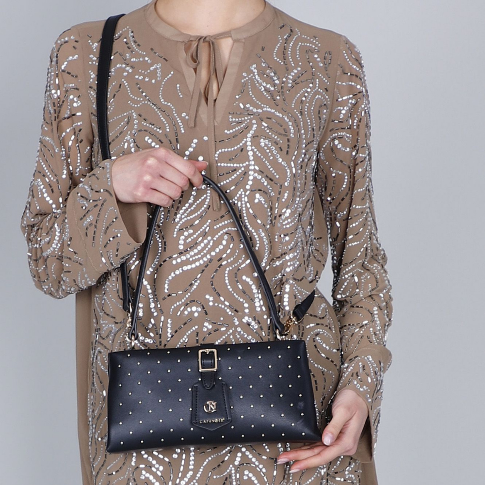 BORSA CAFENOIR NERO PICCOLA CON MICRO BORCHIE ORO