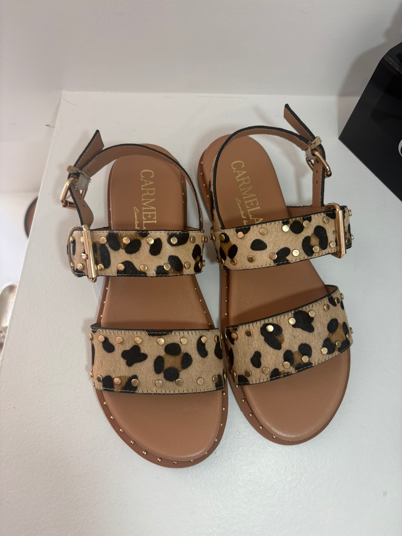 sandalo carmela 100% vera pelle tomaia in cavallino leopardato, calzata regolare.